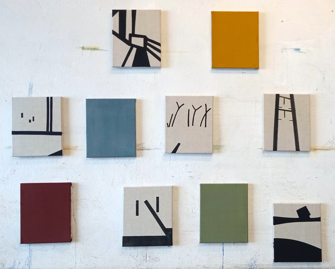 18 x 24 inches, ( 46 x 61 cm )The Empty Lot series also comprises two bigger paintings, "Mid Size Empty Lot I-II", each 39 x 47" and 6 water colors, "ARMA Gone I-VI", plus plus the "Empty Big Lot I-VI" paintings, all 59 x 79 inches from 2025.